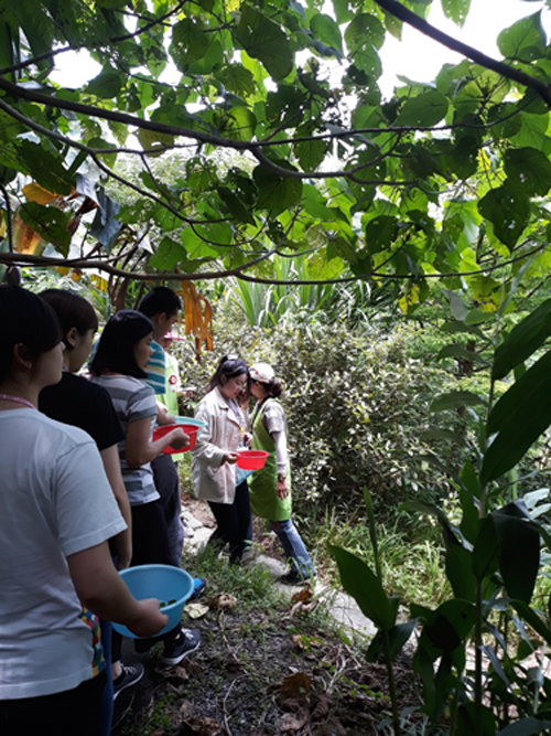 我們邀請了臺灣園藝輔助治療協會的專業講師,帶領大家利用象山農場景觀元素所組成的環境,以植物為媒介,刺激五感以緩解身心壓力,並藉由分組活動、共煮共食來增加同儕團隊合作及分享的機會。